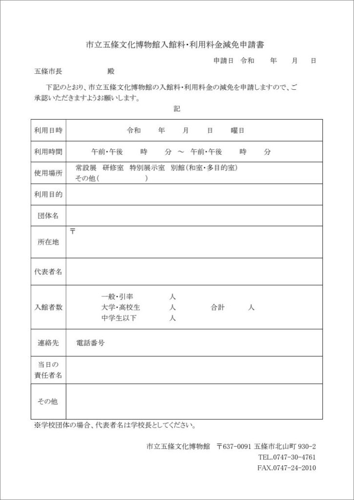 入館料・利用料金減免申請書